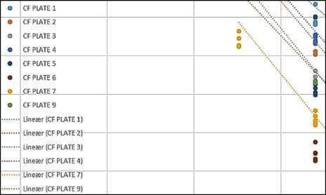 our plate 5and plate 6(DELPHYSKIN®) was compared at 5 m/s to 7 other. In the middle row of the graph you can see that plate 6 (brown dots) has the lowest friction of all paintings.